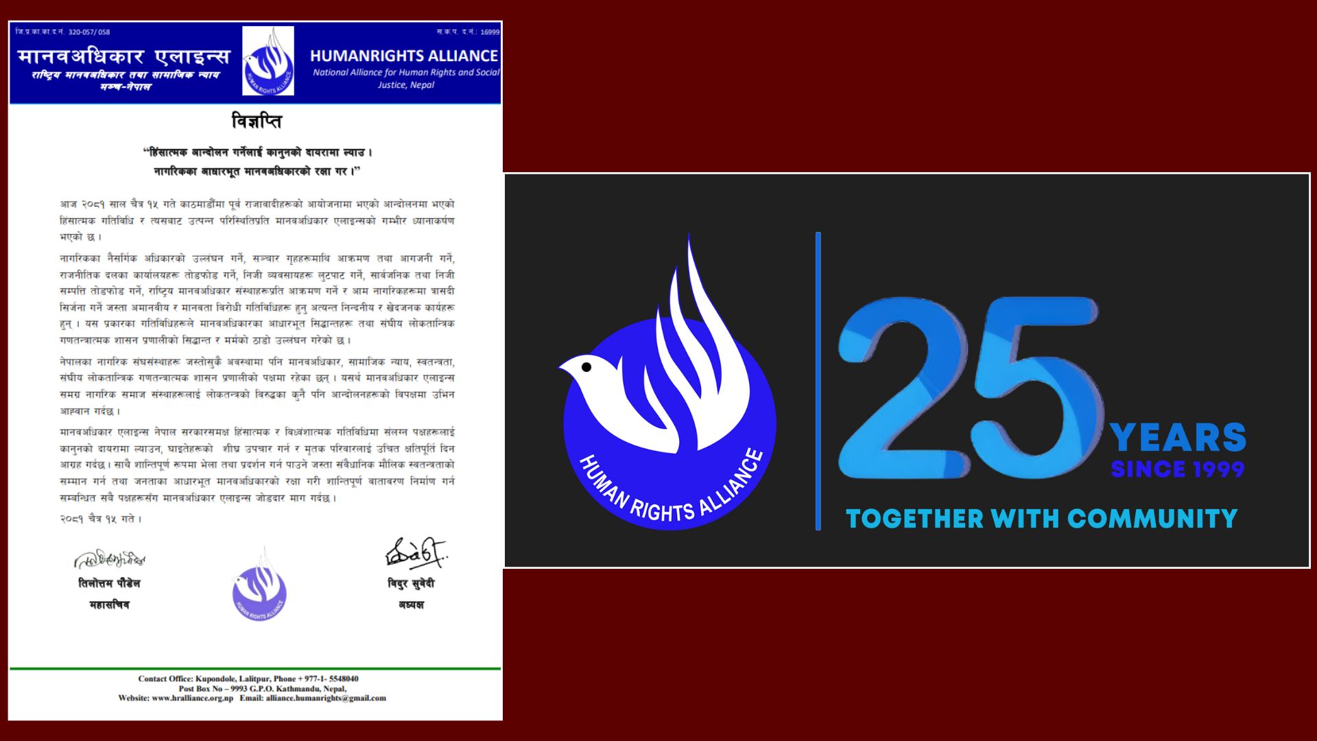 हिंसात्मक गतिविधिमा संलग्न पक्षहरूलाई कानुनको दायरामा ल्याउन मानवअधिकार एलाइन्सले आग्रह
