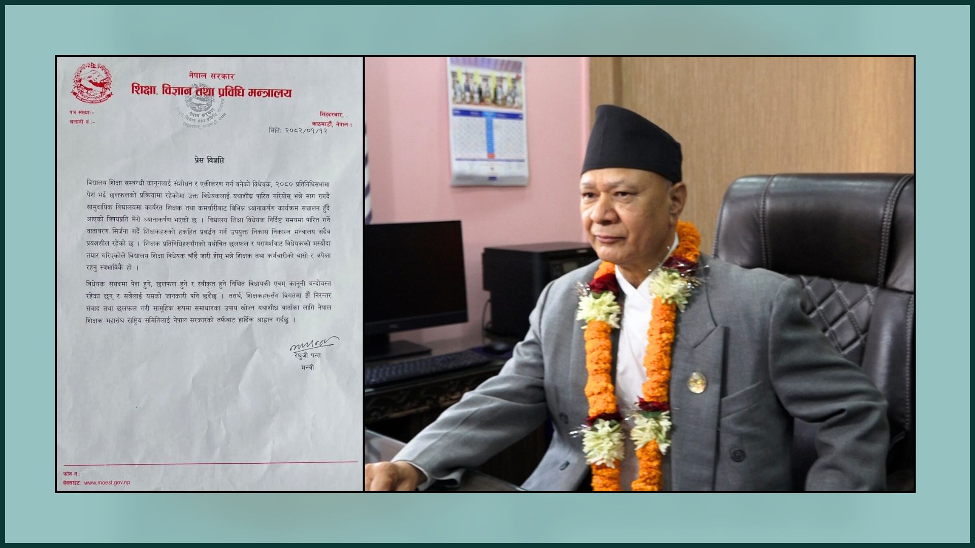 Read Moreकाठमाडौं । शिक्षा, विज्ञान तथा प्रविधिमन्त्री रघुजी पन्तले शिक्षकहरुसँग विगतमा झैं निरन्तर संवाद तथा छलफल गरी सामूहिक रूपमा…