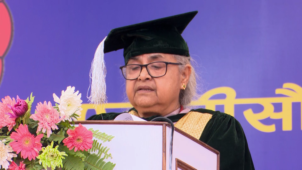 धुलिखेलस्थित काठमाडौं विश्वविद्यालयको ३१ औँ दीक्षान्त समारोहलाई सम्बोधन गर्दै उनले वर्तमान संरचनाले उच्च शिक्षा क्षेत्रमा देखिएको दलीय हस्तक्षेप अन्त्य गर्न सरकार प्रतिबद्ध रहेको उल्लेख गरिन् ।