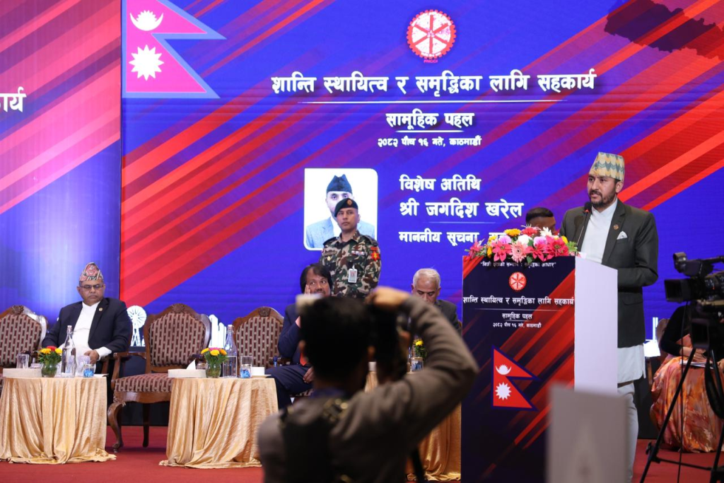 उनले भने, ‘मुलुक निर्वाचनमय भएको छ । फागुन २१ गतेको निर्वाचन सुनिश्चित छ । निर्वाचन हँुदैनकी भन्ने दुबिधाको अन्त्य भएको छ । सरकार दृढताका साथ निर्वाचनमा अगाडि बढेको छ । सरकारको दरिलो साथ निजी क्षेत्रलाई छ । उद्योग, व्यापार, व्यावसाय र निजी क्षेत्रको सुरक्षा हाम्रो साझा प्रतिबद्धता सबैको प्राथमिकतामा हुनुपर्छ ।