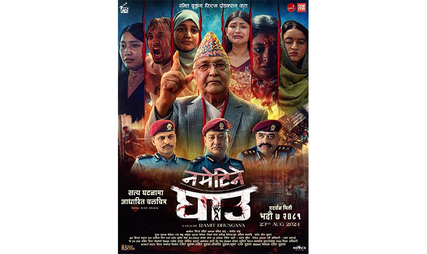 चलचित्रको सार्वजनिक पोस्टरमा प्रधानमन्त्री केपी शर्मा ओली ,प्रहरी उपरीक्षकद्वय बाल नर्सिह राणा र कुमुद ढुंगेल, प्रहरी निरीक्षक जेआर शर्मा लगायत चलचित्रका मुख्य कलाकारहरूलाई देख्न सकिन्छ । अभिनेता रमित ढुङ्गानाले निर्देशन तथा निर्माण रहेको सत्य घटनामा आधारित चलचित्र ‘नमेटिने घाउ’ मा प्रधानमन्त्री ओलीका अलावा पूर्व प्रधानमन्त्री माधव नेपालको समेत अभिनय रहेको छ । चलचित्रमा प्रधानमन्त्री ओलीले प्रधानमन्त्रीकै भूमिका निर्वाह गरेका छन् ।