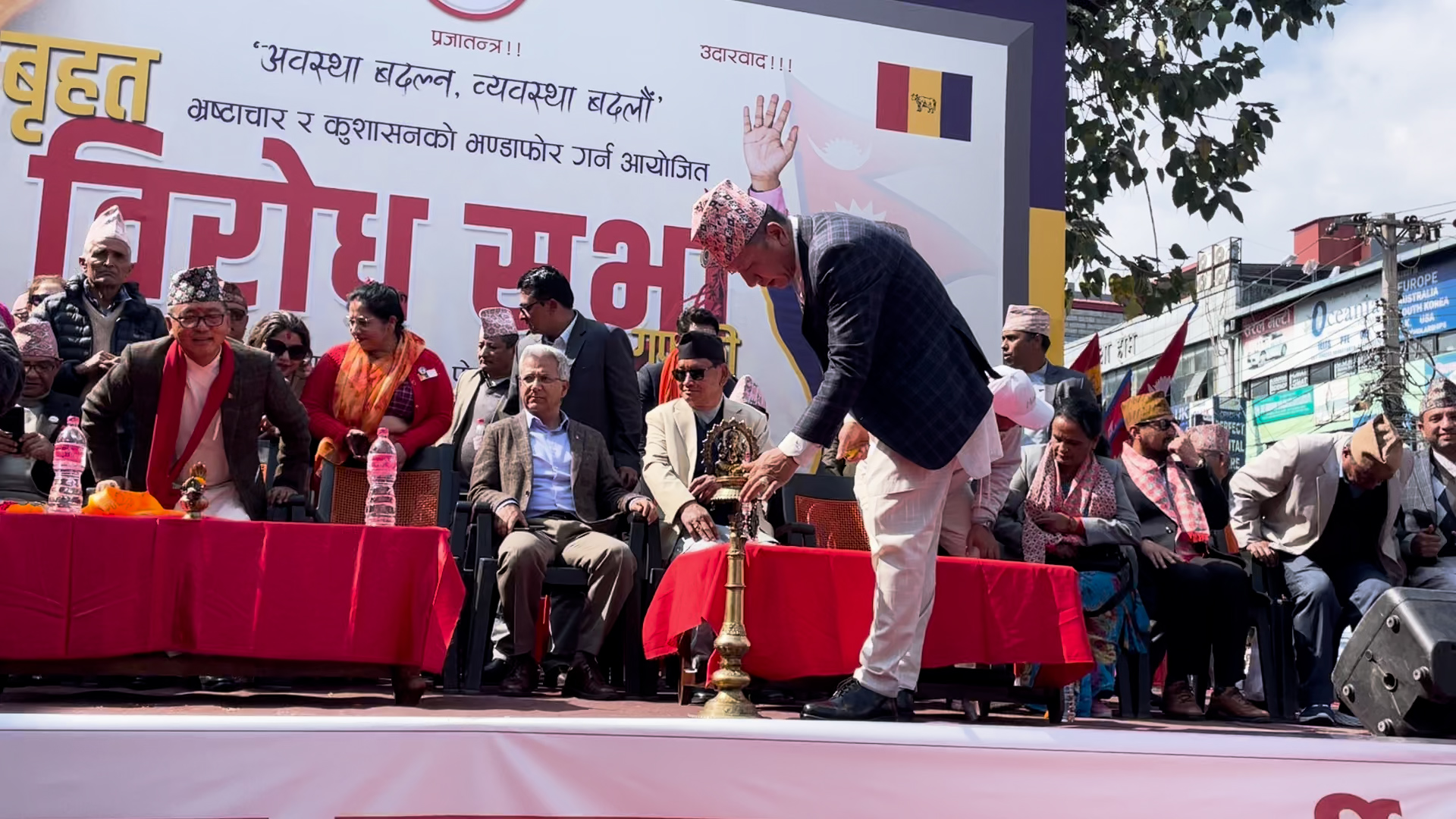 पोखरा । राप्रपाको विरोध सभा पोखरामा शुरु भएको छ । विरोध सभामा राप्रपा अध्यक्ष राजेन्द्र लिङ्देन, प्रवक्ता ज्ञानेन्द शाही, नेता रविन्द्र मिश्र समेत सहभागी छन्